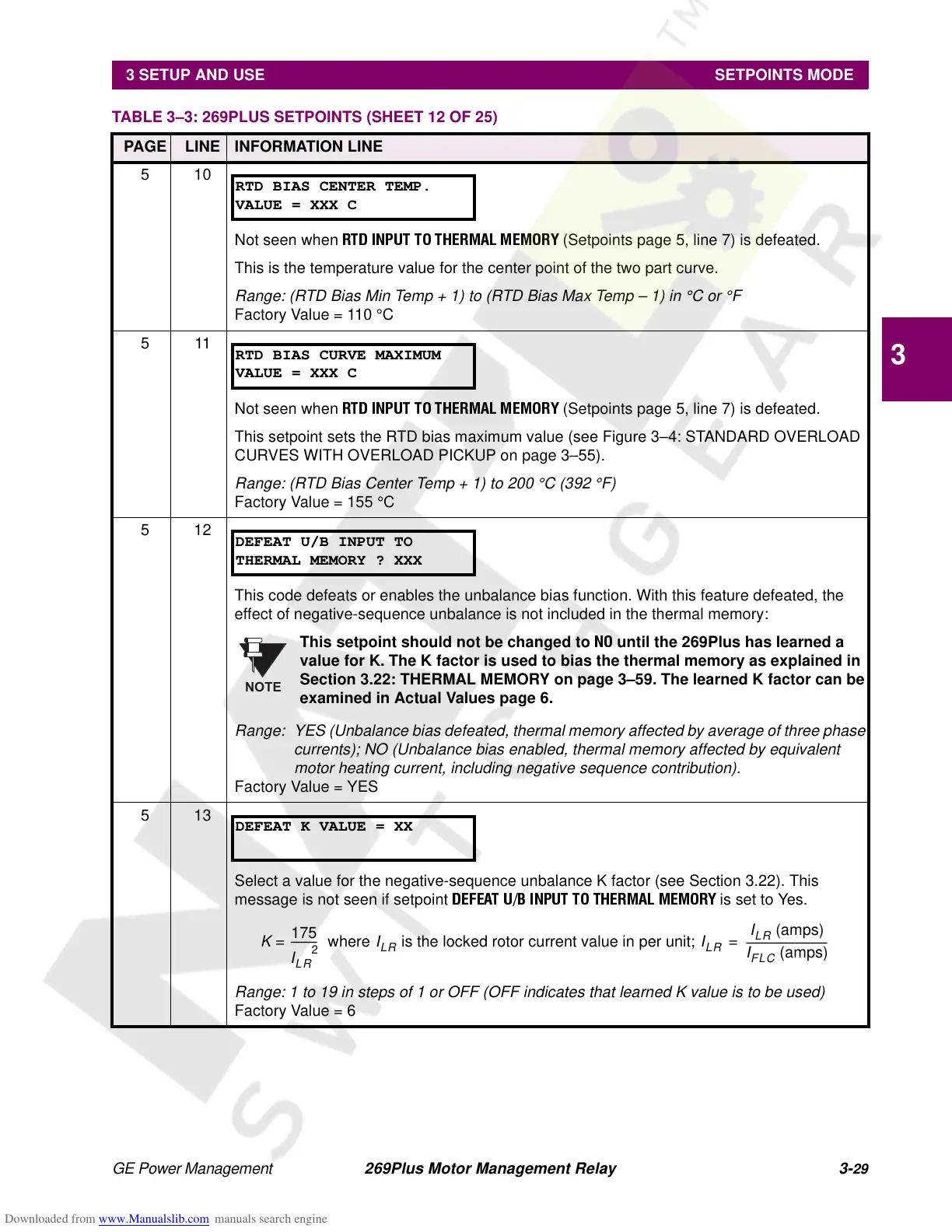 value for K. The K factor is used to bias the thermal memory as explained in
