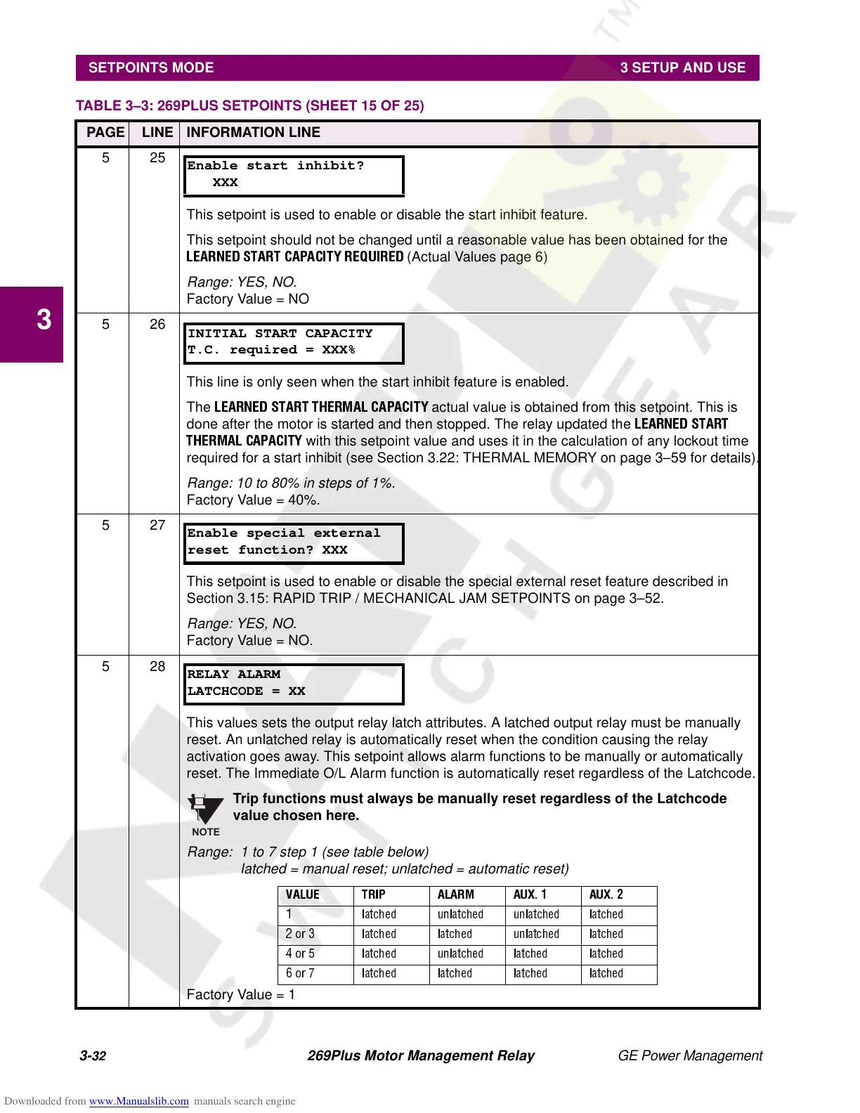 TABLE 3–3: 269PLUS SETPOINTS (SHEET 15 OF 25)