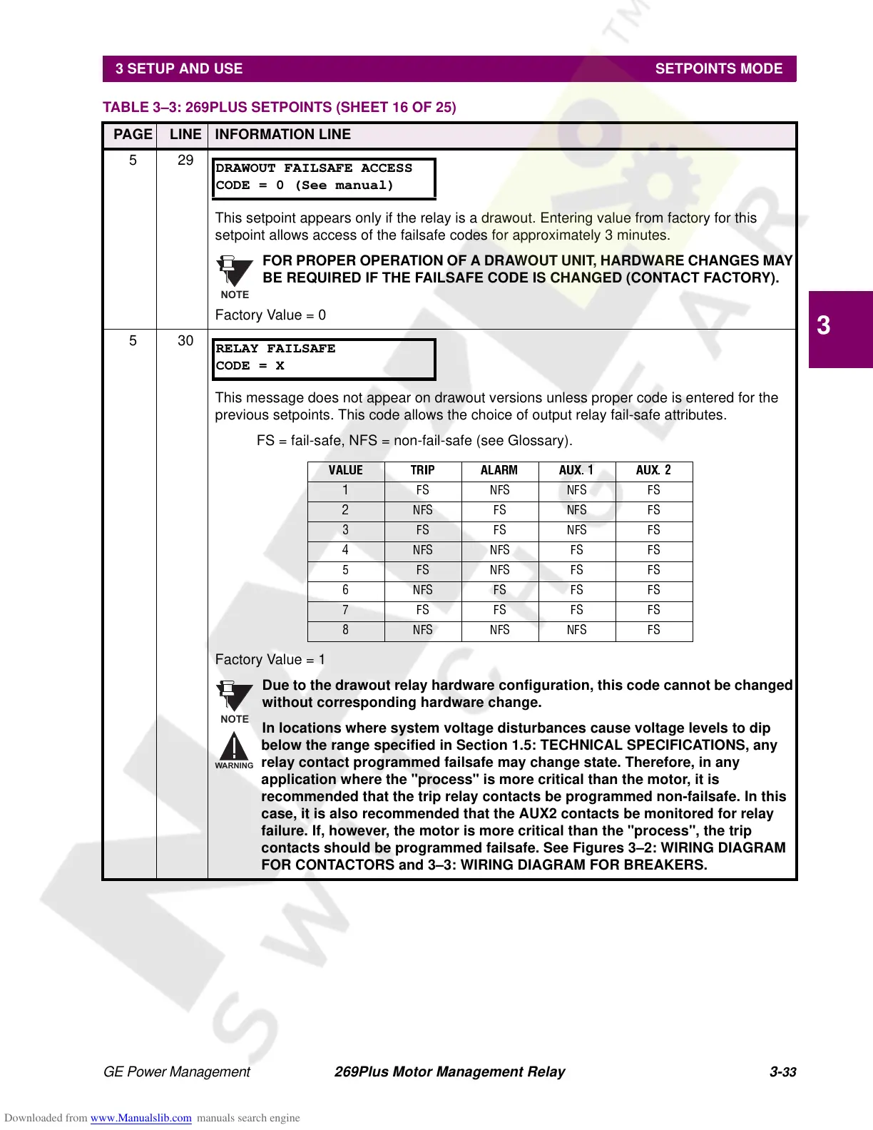 TABLE 3ā3: 269PLUS SETPOINTS (SHEET 16 OF 25)