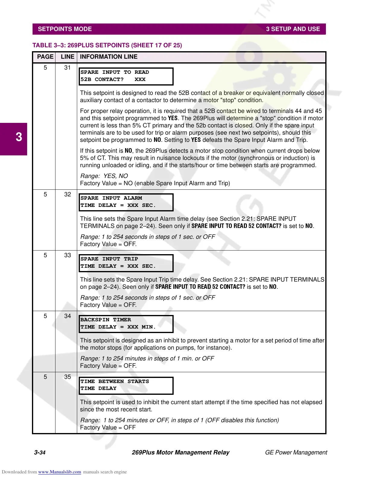 TABLE 3ā3: 269PLUS SETPOINTS (SHEET 17 OF 25)