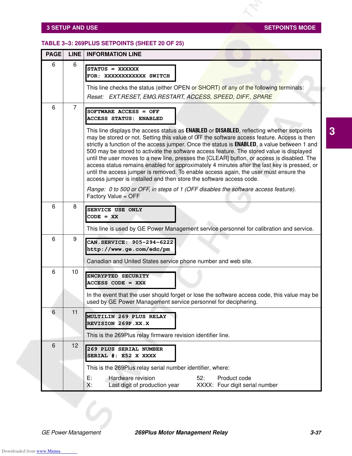 TABLE 3–3: 269PLUS SETPOINTS (SHEET 20 OF 25)