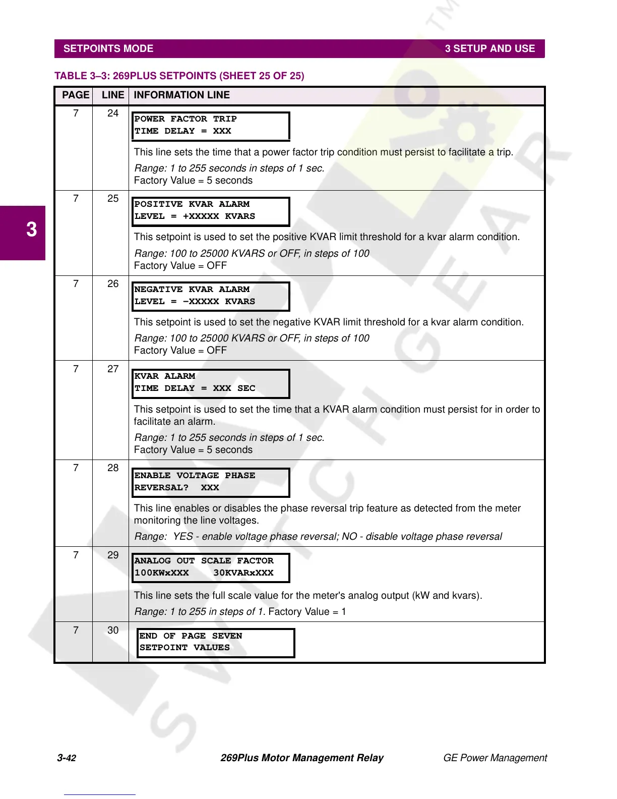 TABLE 3–3: 269PLUS SETPOINTS (SHEET 25 OF 25)