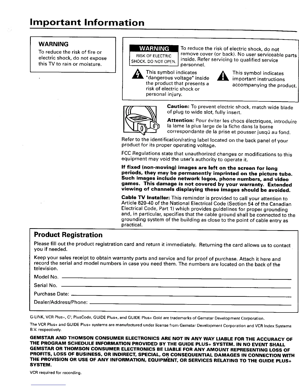 G-LINK, VCR Plus+, C_,PlusCode, GUIDE Plus+, and GUIDE Plus+ Gold are trademarks of Gemstar Development Corporation.