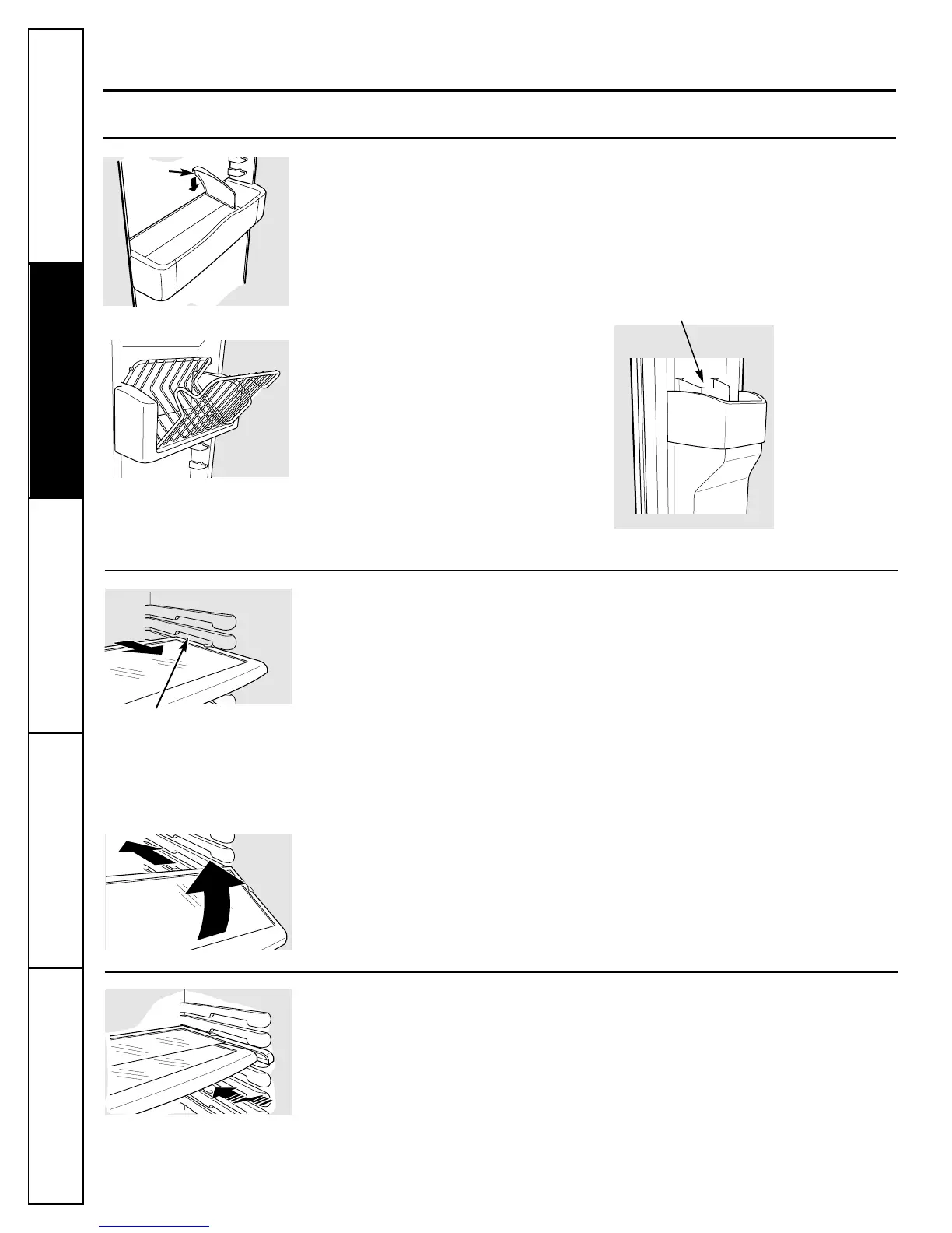 Bacs de porte de réfrigérateur et bacs basculants de porte de congélateur.