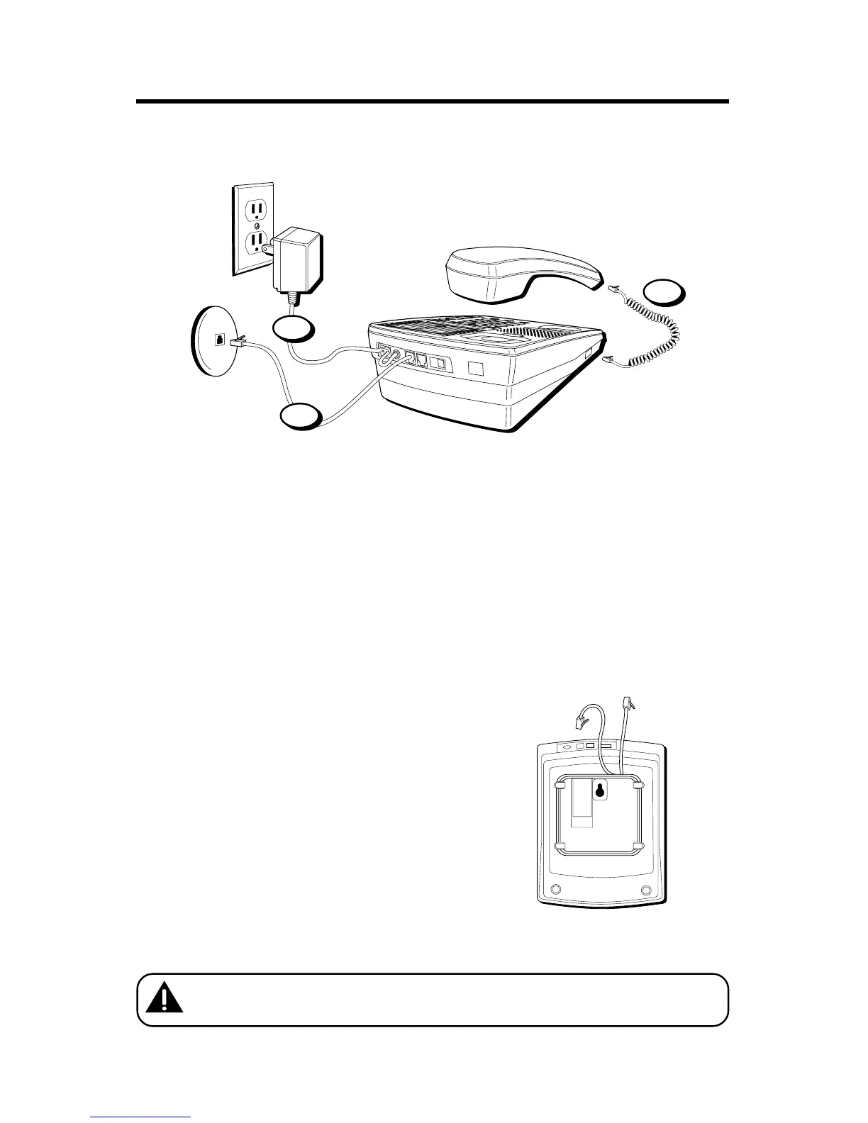 3. Plug the handset cord into the handset, and into the telephone jack on