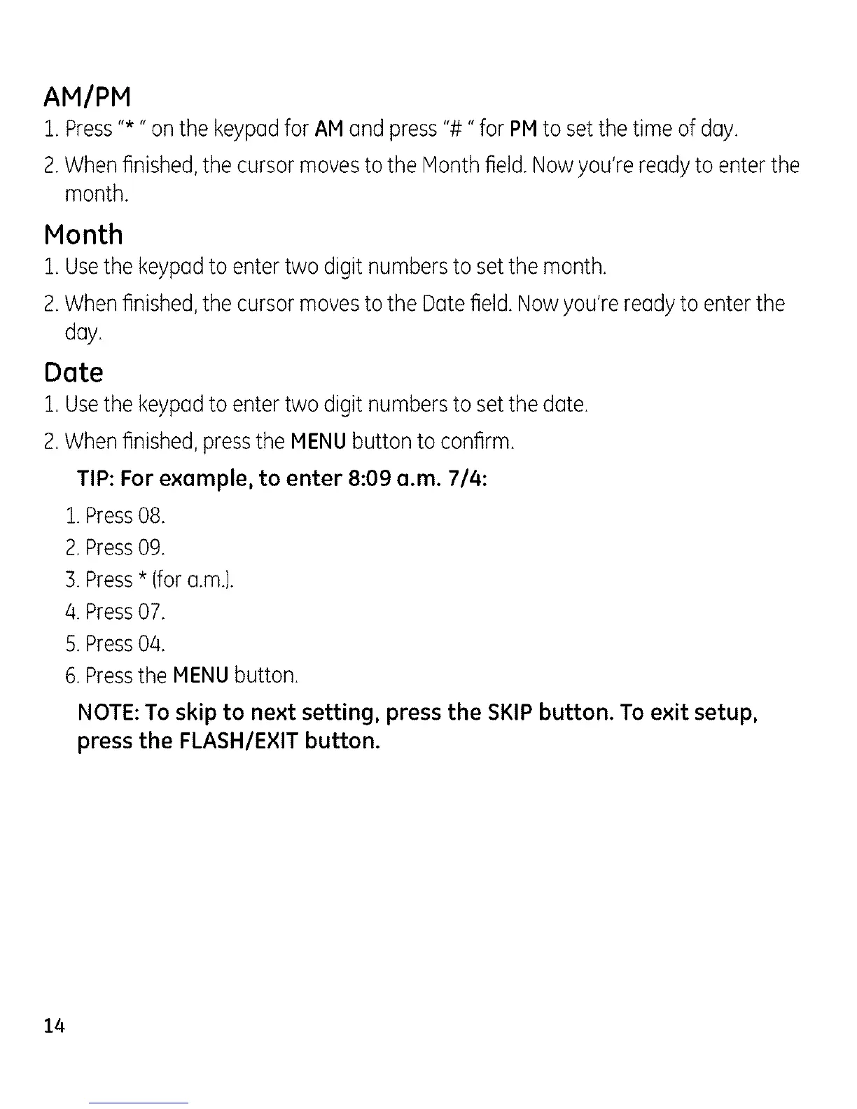 TIP:For exemple, to enter 8:09 e.m. 7/4: