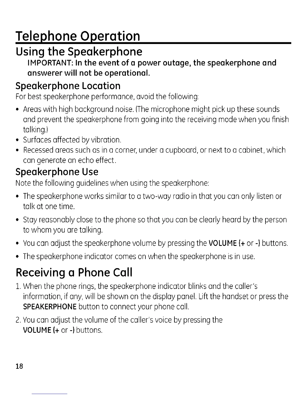 IMPORTANT:In the event of a power outage, the speakerphone and