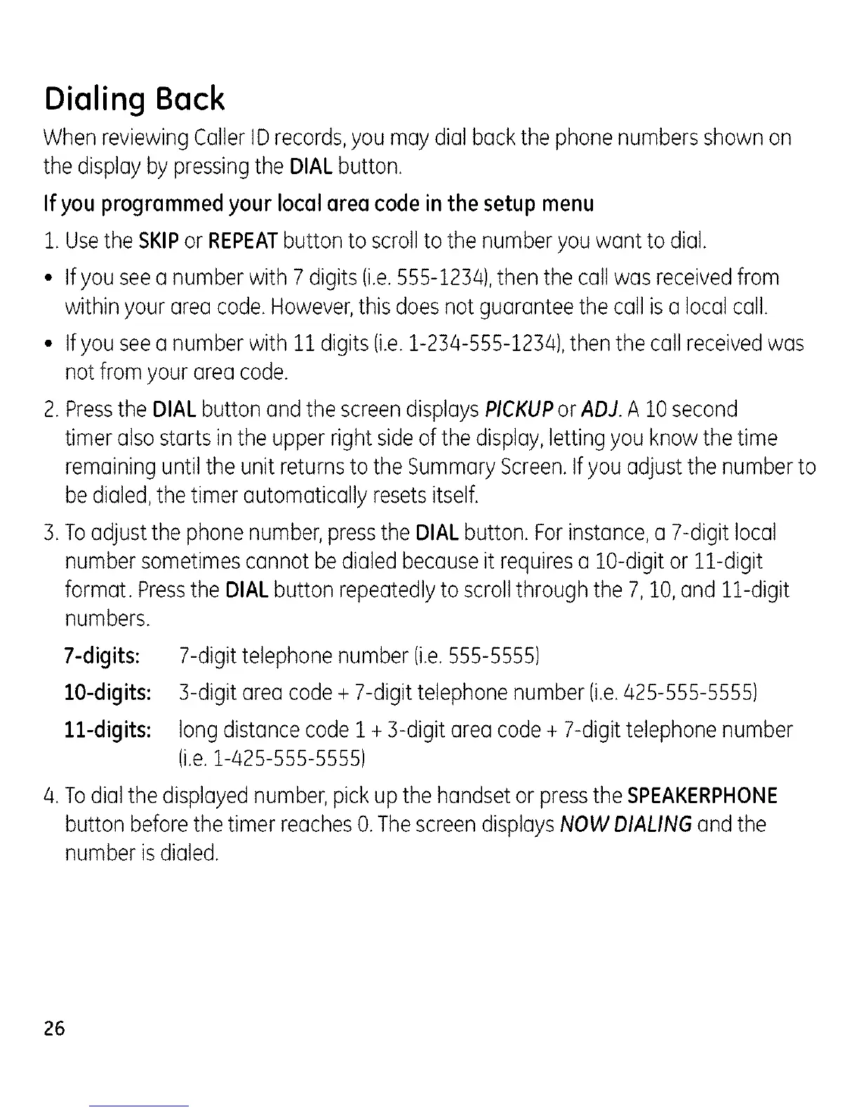 3.Toadjustthe phonenumber,pressthe DIALbutton. Forinstance,a 7-digitlocal