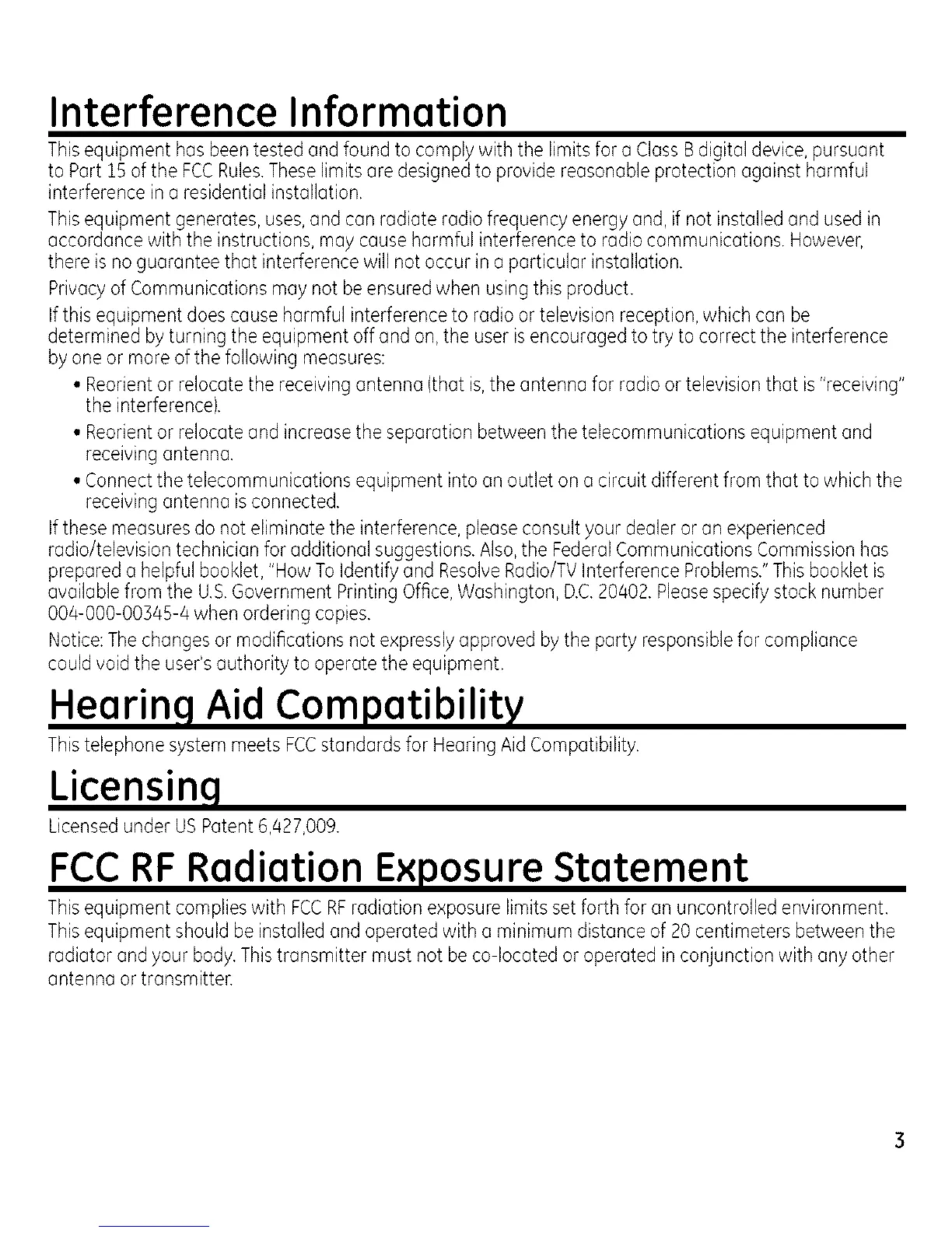 Thistelephone systemmeets FCCstandards for Hearing AidCompatibility.