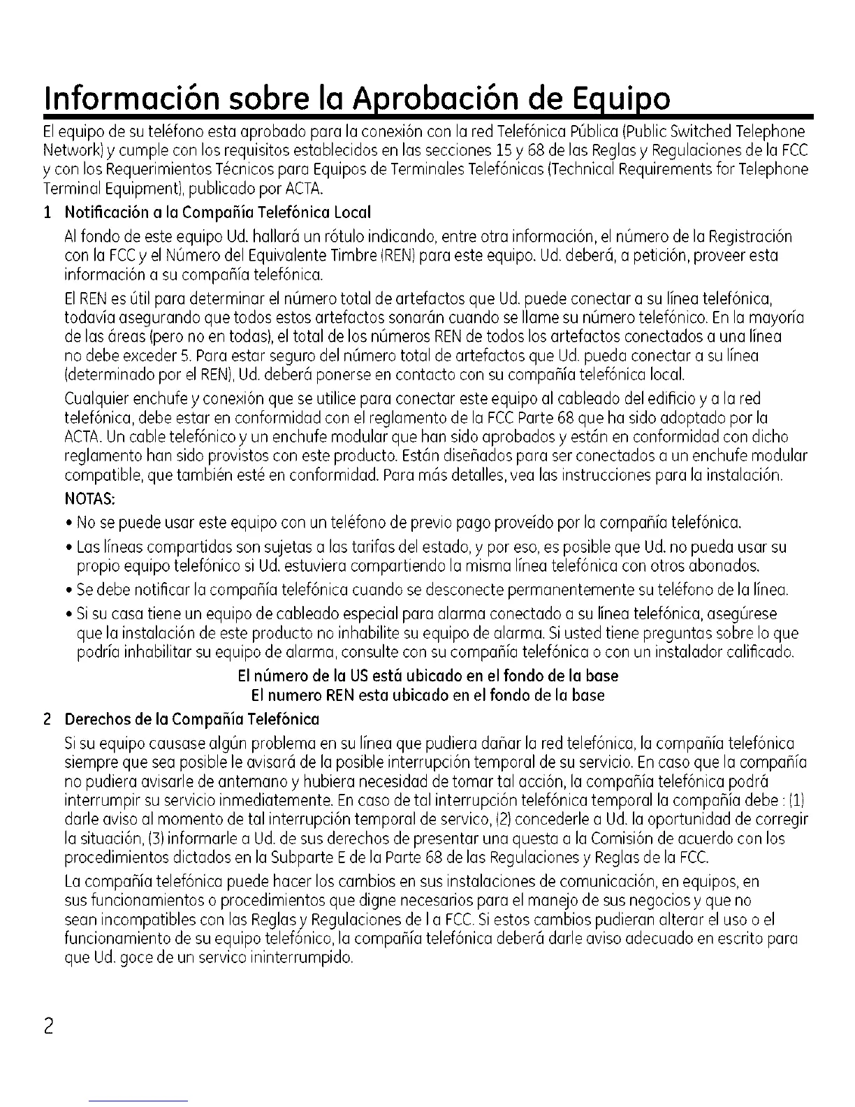 telef6nica,debeestarenconformidadcon elreglamentode la FCCParte68queha sidoadoptadoporla