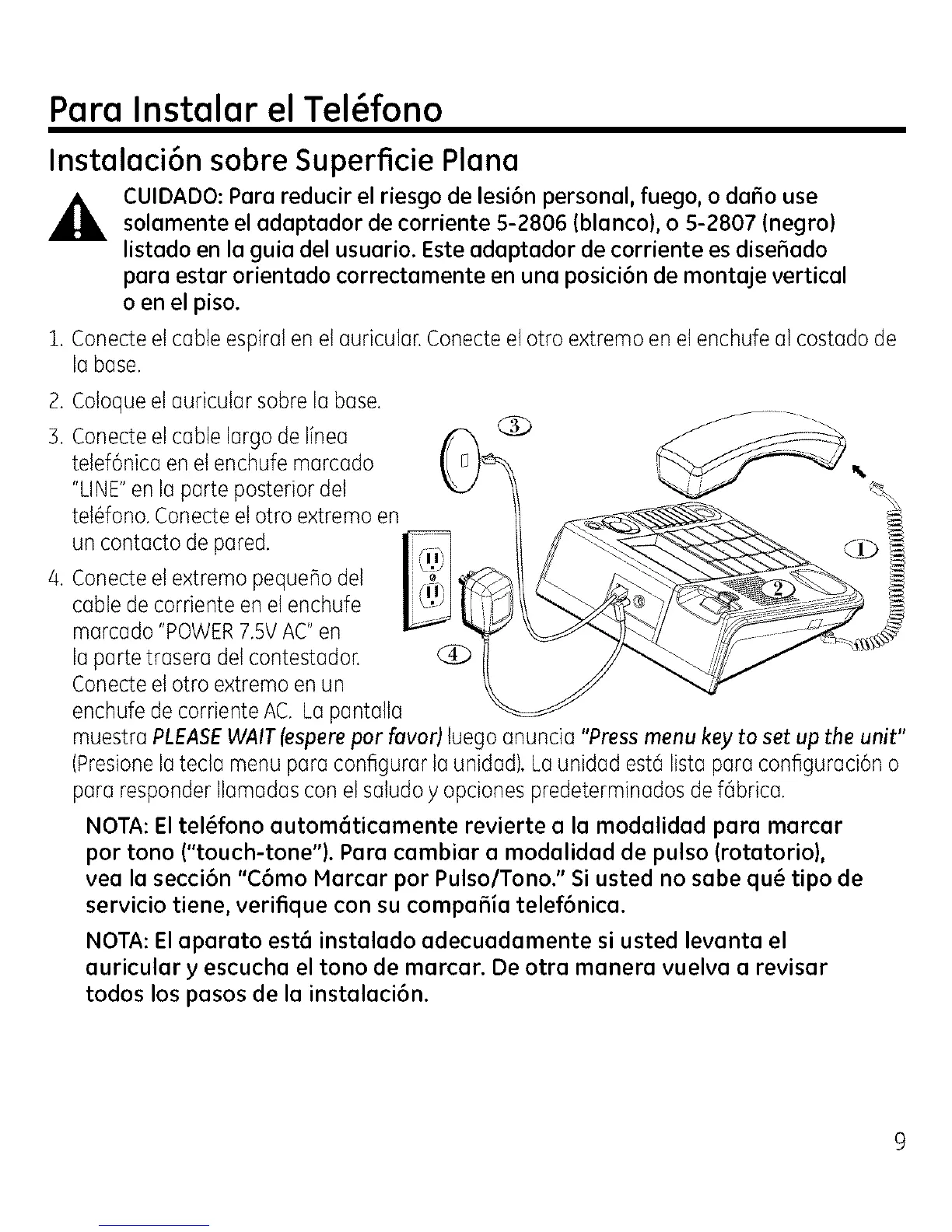 por tono ("touch-tone"). Para cambiar a modalidad de pulso (rotatorio),