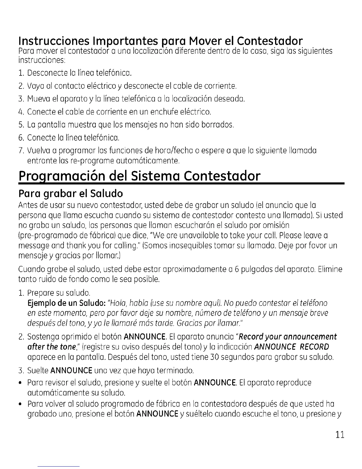 Antesdeusar su nuevocontestador,usteddebede grabar unsaludo (elanuncioque la