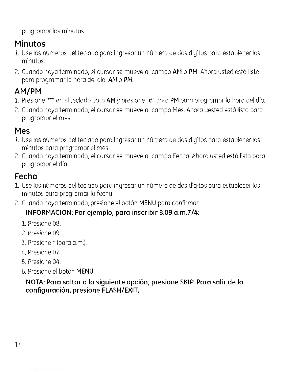 NOTA: Para saltar a la siguiente opci6n, presione SKIP.Para salir de la