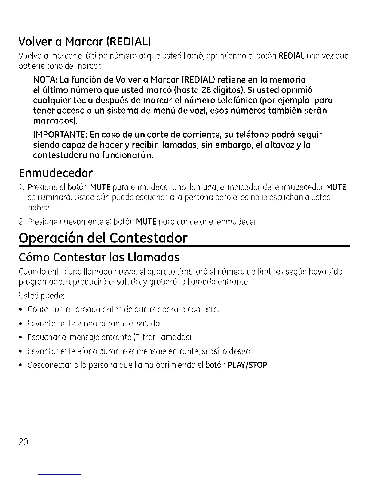 Operaci6n del Contestador