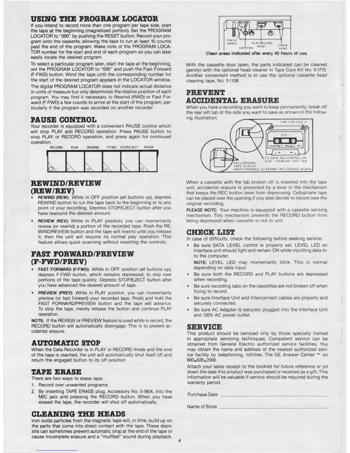 2. By inserting TAPE ERASE plug, Accessory No. 5-1804, into the