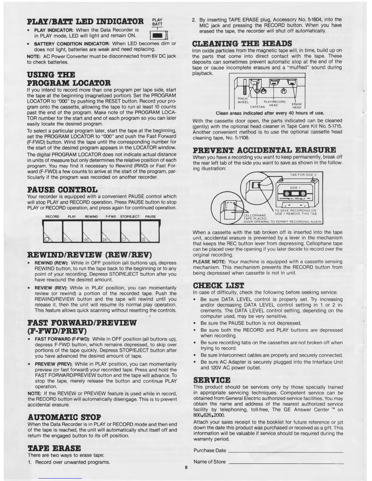 review (or rewind) a portion of the recorded tape. Push the