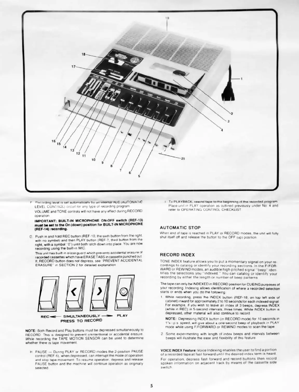 VOLUME and TONE corlrols will nQI h;iiv• ,1111 .,tlecl ruron; RECORD