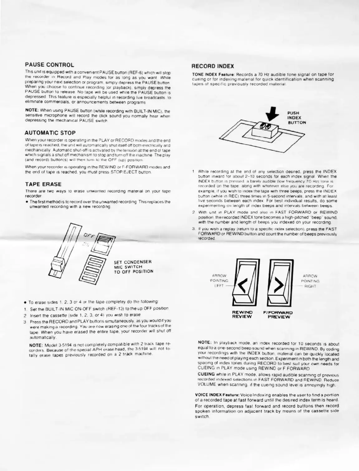 NOTE : wt,en u!wllC} i-'AUSE bunco 1..n.le reoorClinq ,,.,th 01.Jll T•IN MIC), the