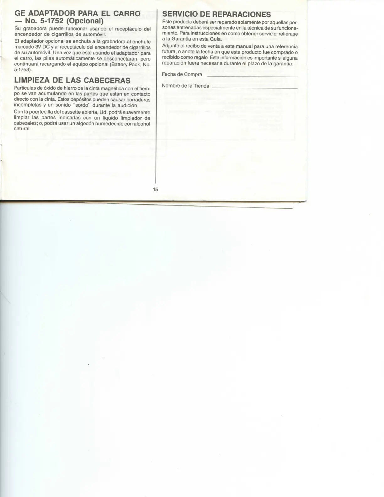 miento. Para instrucciones en como obtener servicio, refierase
