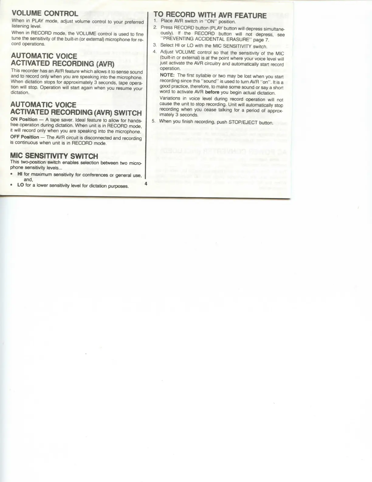 • LO for a lower sensitivity level for dictation purposes.