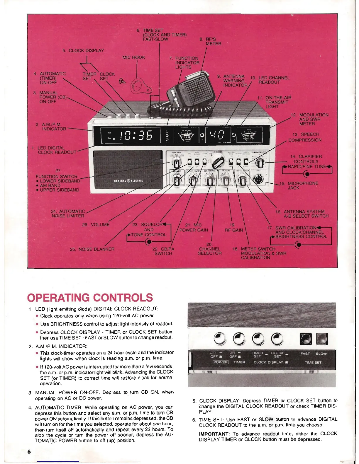 5. CLOCK DISPLAY: Depress TIMER or CLOCK SET button to