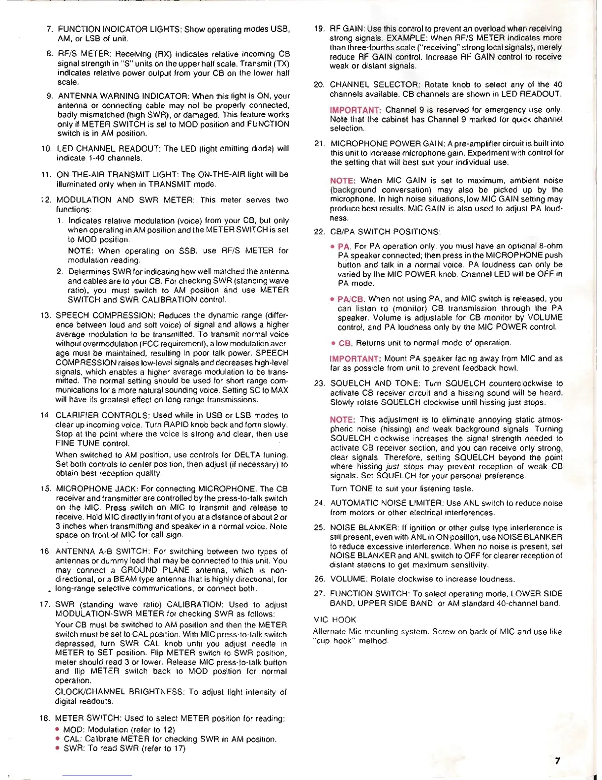 24. AUTOMATIC NOISE LlMITER: Use ANl switch to reduce noise