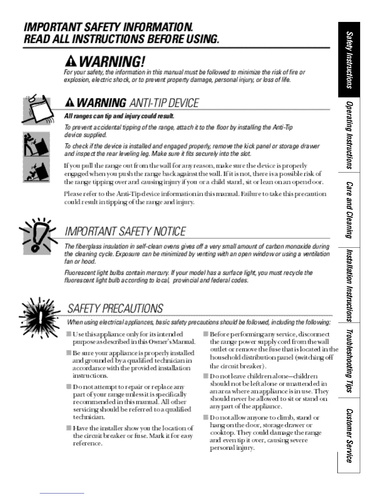 GE 30" - Safety Instructions; Safety Precautions