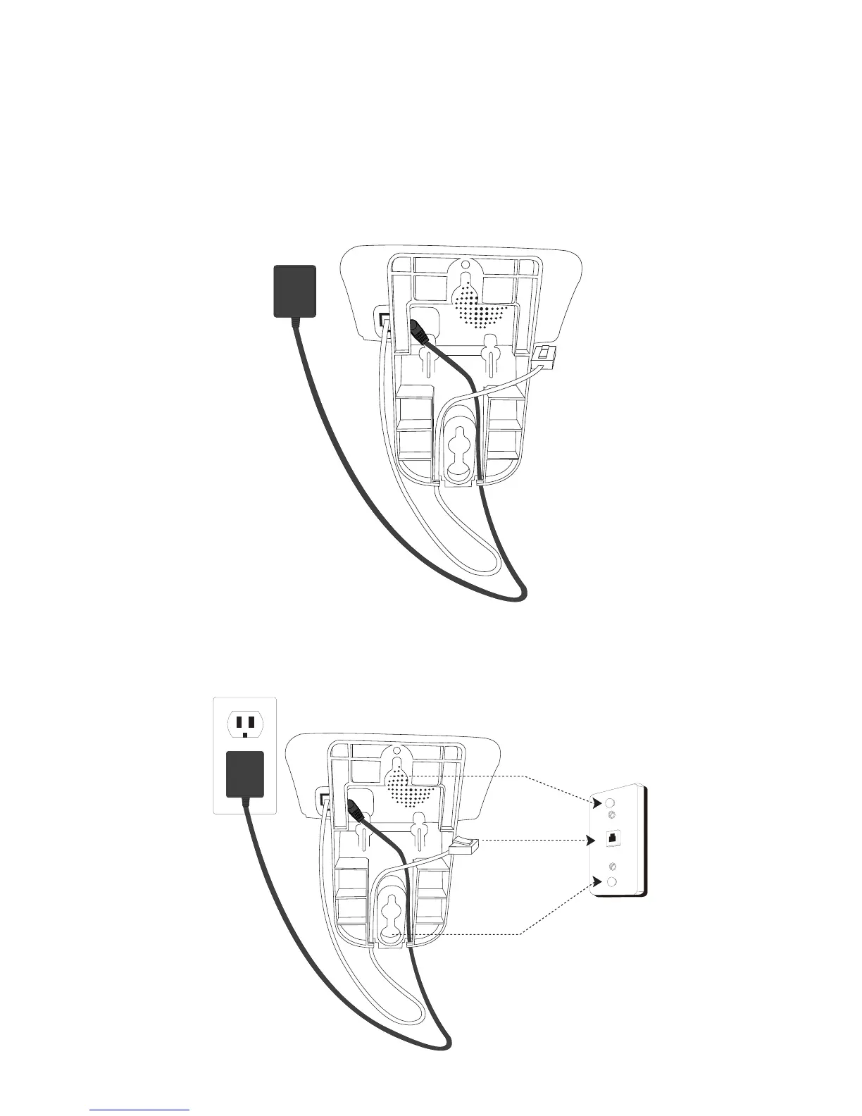 5. Route the telephone line cord through the open slot at the bottom