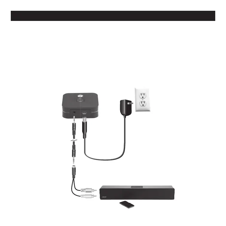 the GE-branded audio receiver. Then plug the AC charger into an available wall outlet.