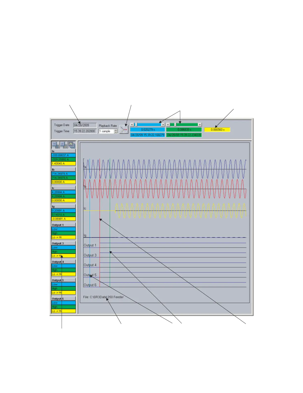 • To view a previously saved COMTRADE file, click the Open button and select the