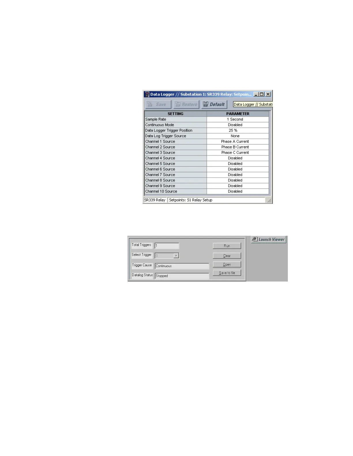 Select the Setpoints > S1RelaySetup > Datalogger menu item to open the Datalogger