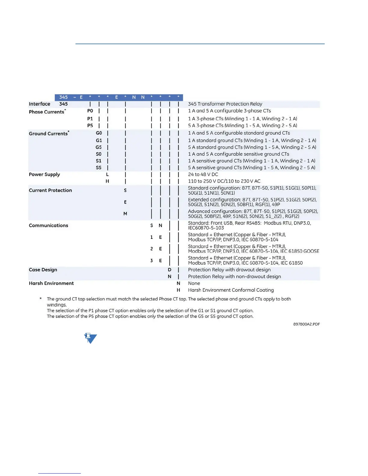 The information to specify a 345 relay is provided in the following Order Code figure.