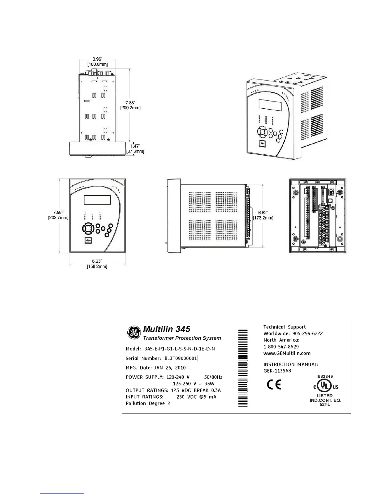 Figure 2-2: 345 dimensions - Non-drawout unit