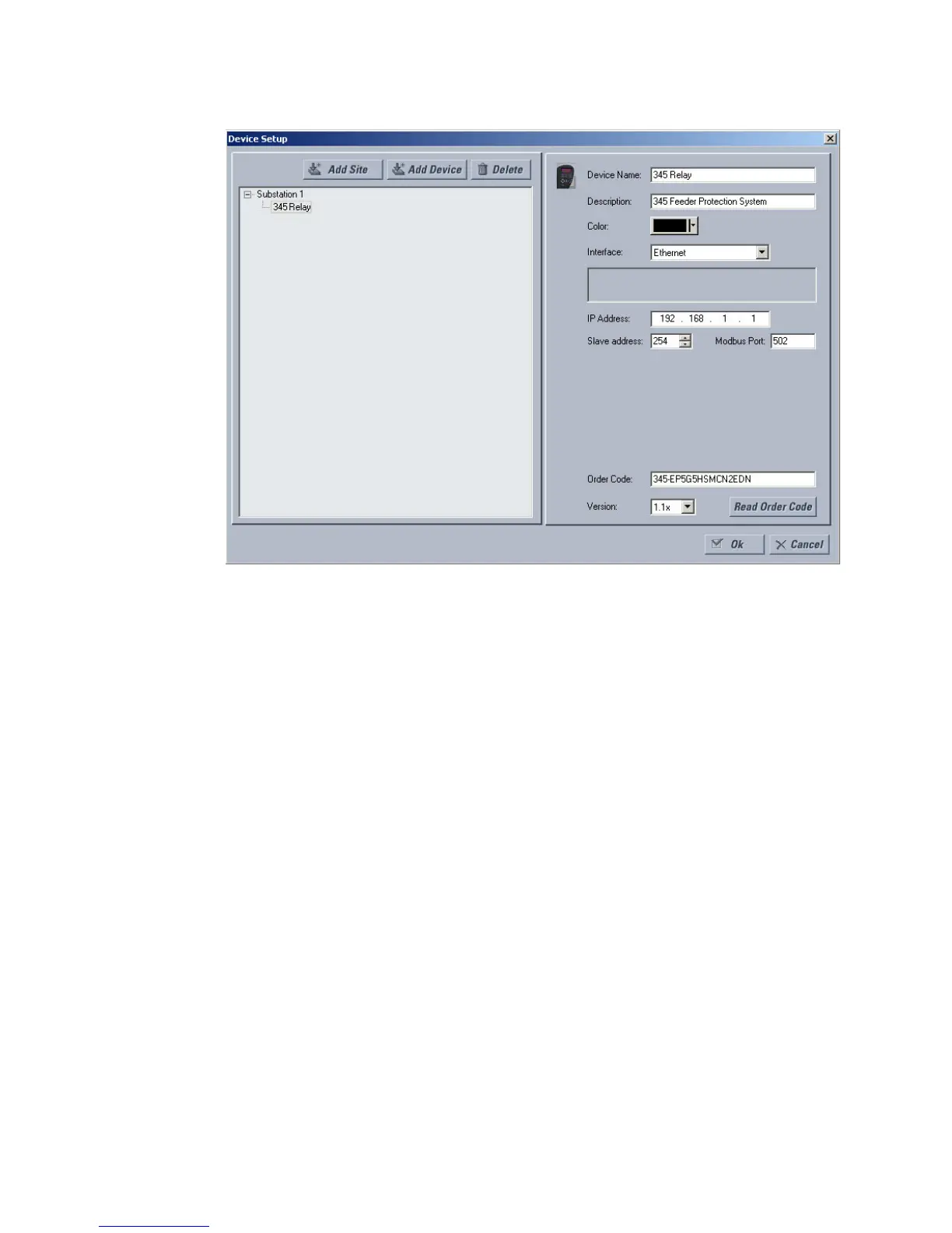 8. Enter the IP address, slave address, and Modbus port values assigned to the 345 relay