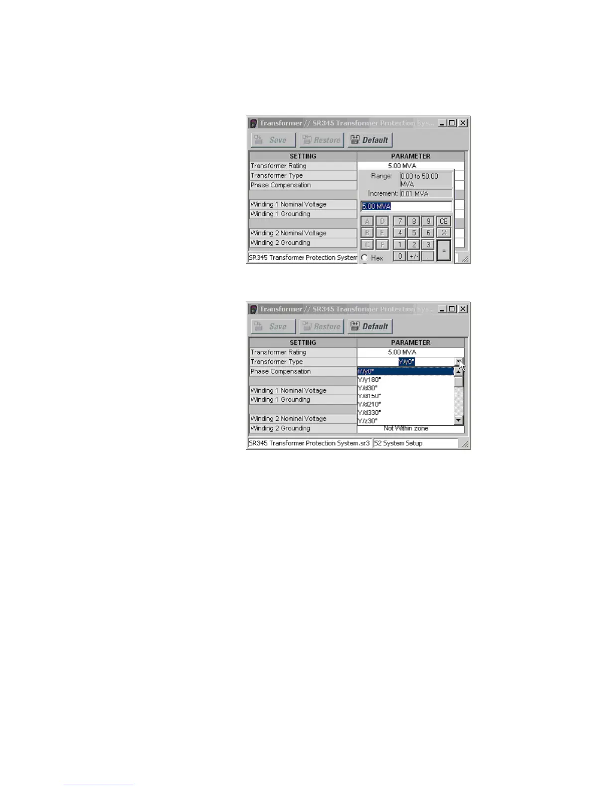 5. For setpoints requiring non-numerical pre-set values (e.g. Transformer type below),