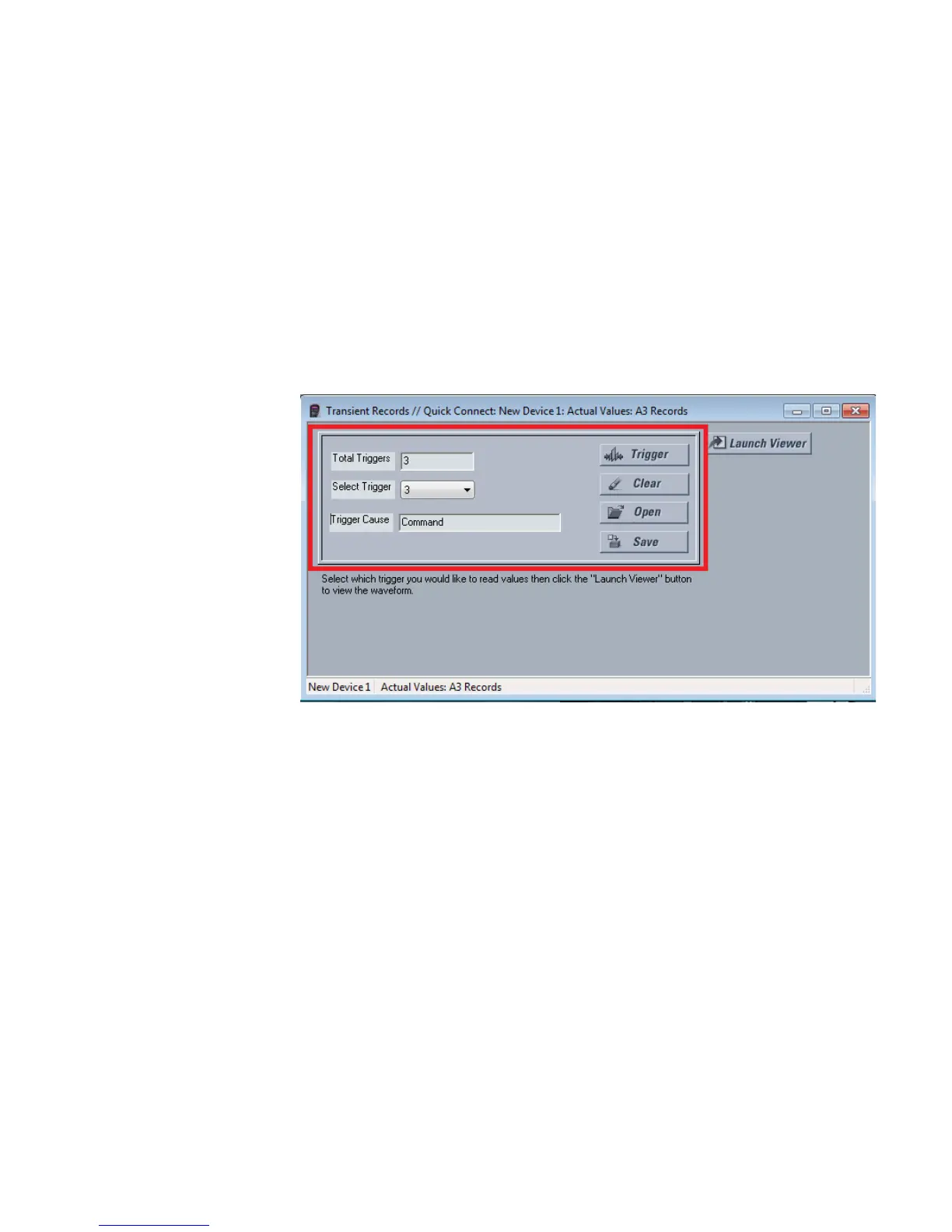 •Click on Trigger Waveform to trigger a waveform capture. Waveform file numbering