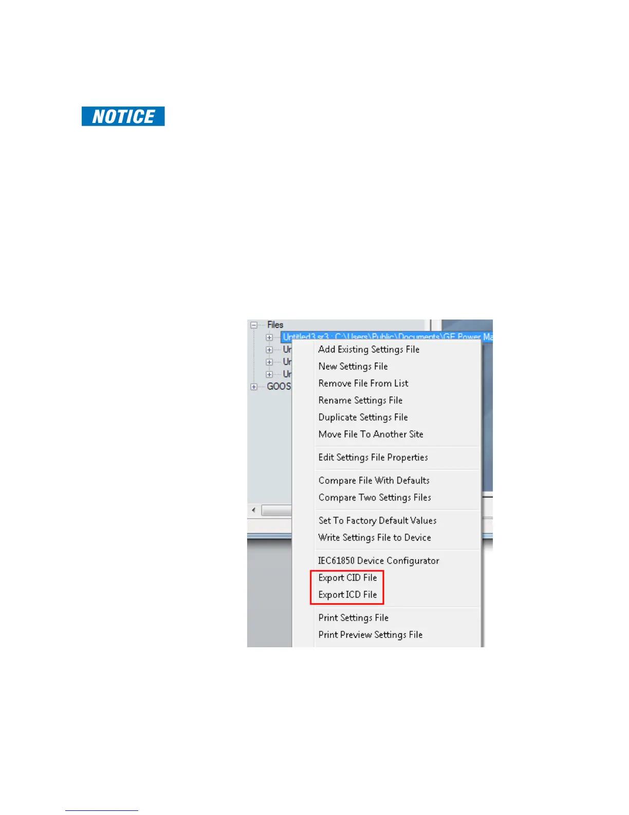 The Export CID File menu option generates the CID file, extracting all 61850 configuration
