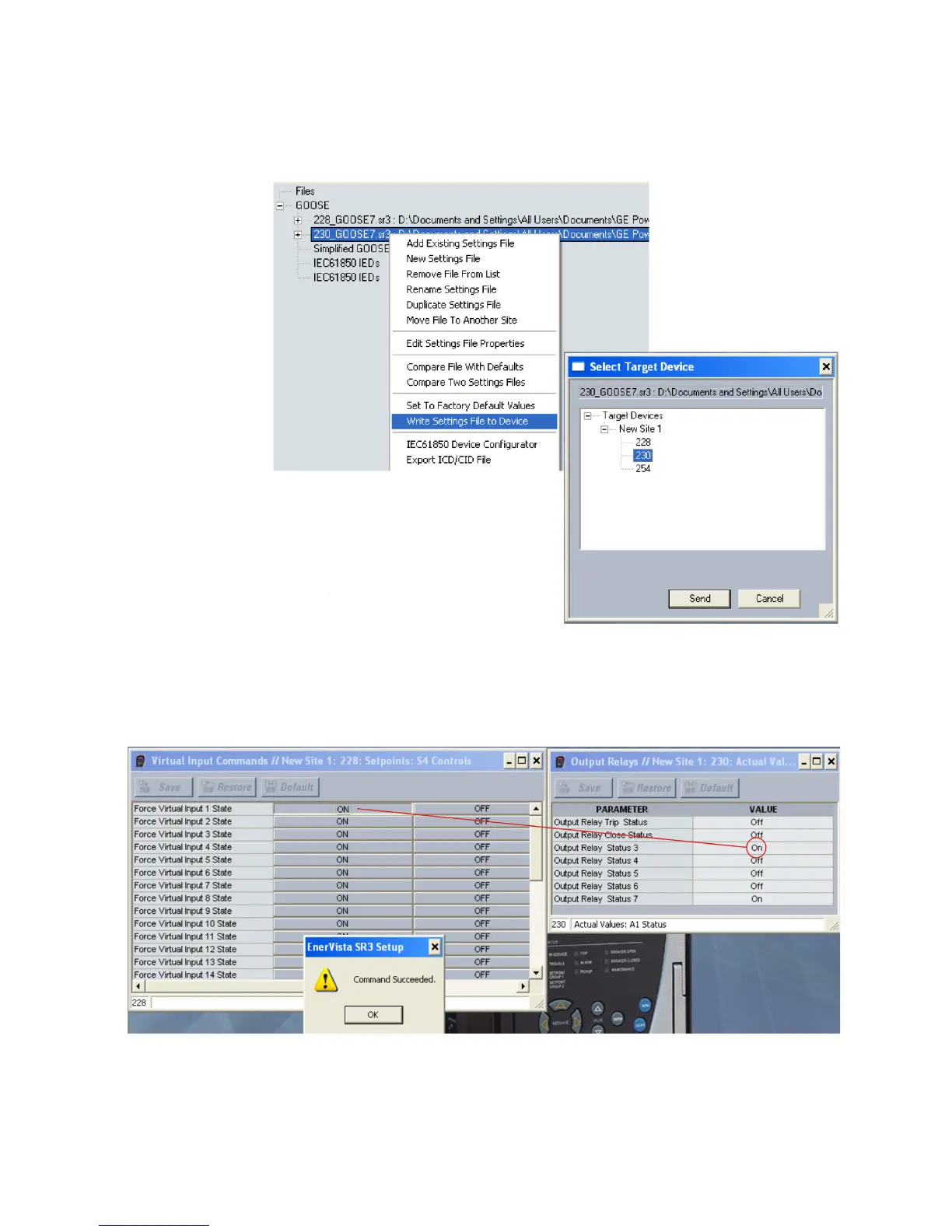 4.1. Right-click the settings file labeled 228_GOOSE7 and select Write Setting File