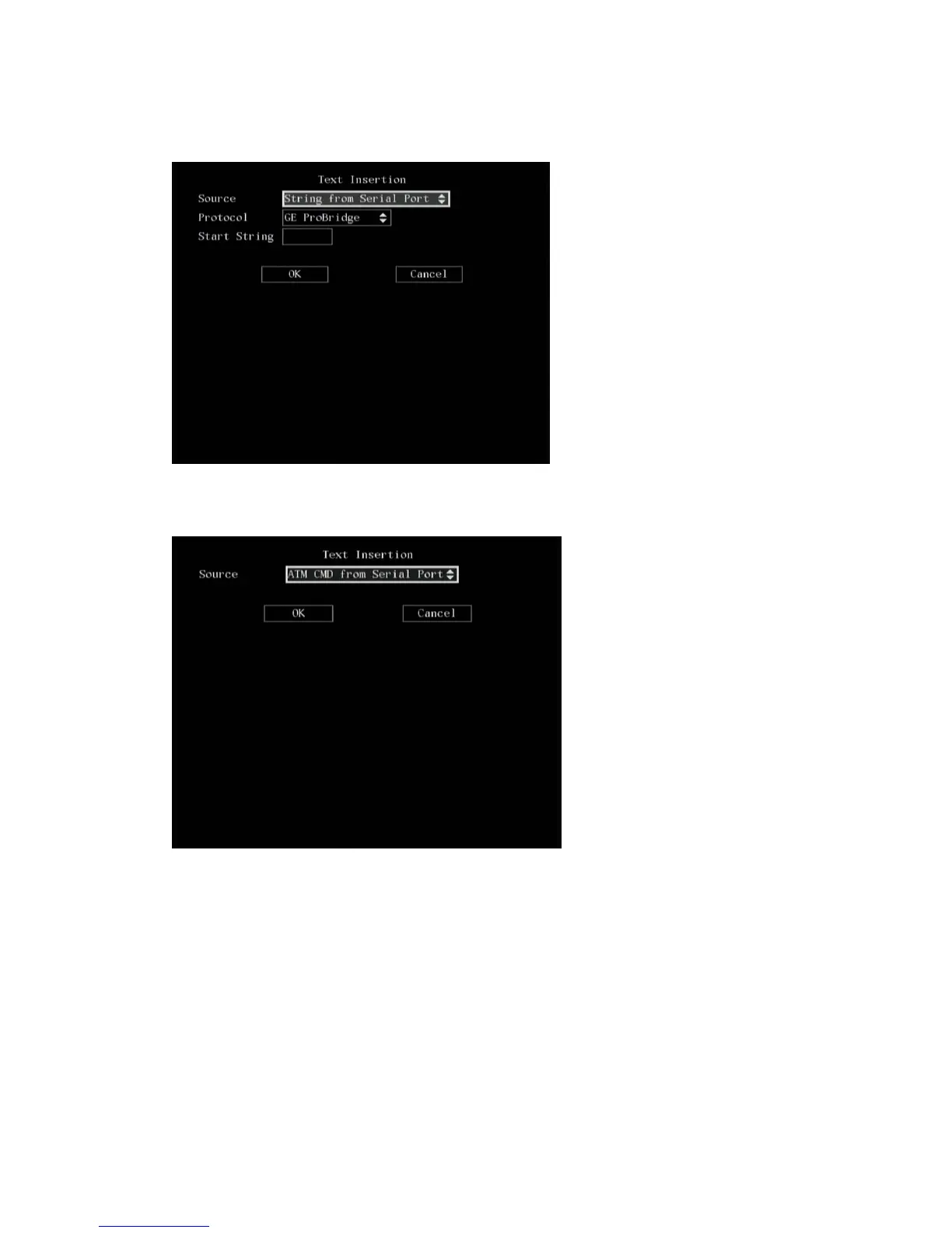 pre-populated default values are for GE ProBridge. The RS-232 settings can be changed in any order.