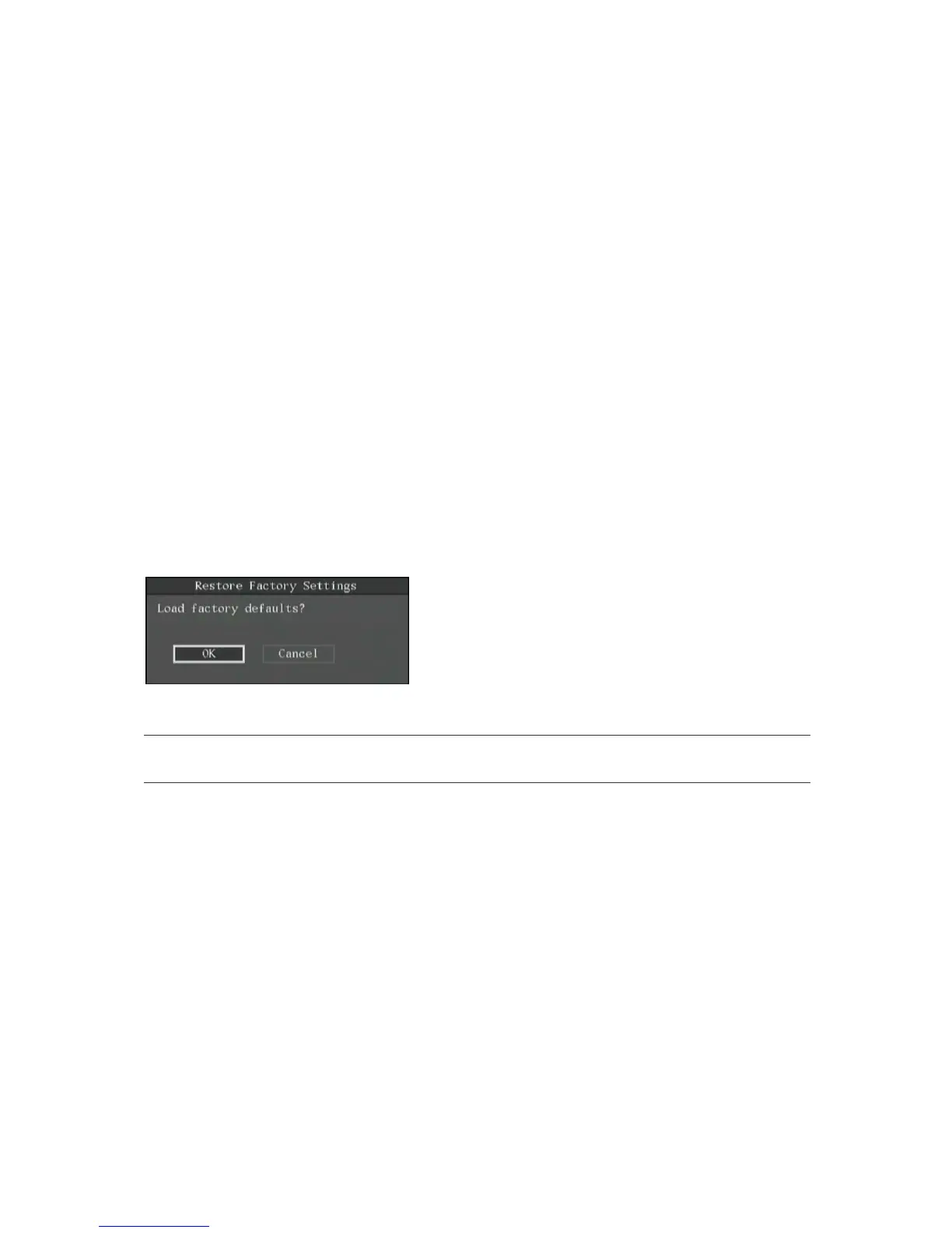 1. In the System menu go to the Factory Defaults restore button and press Enter or left-click the