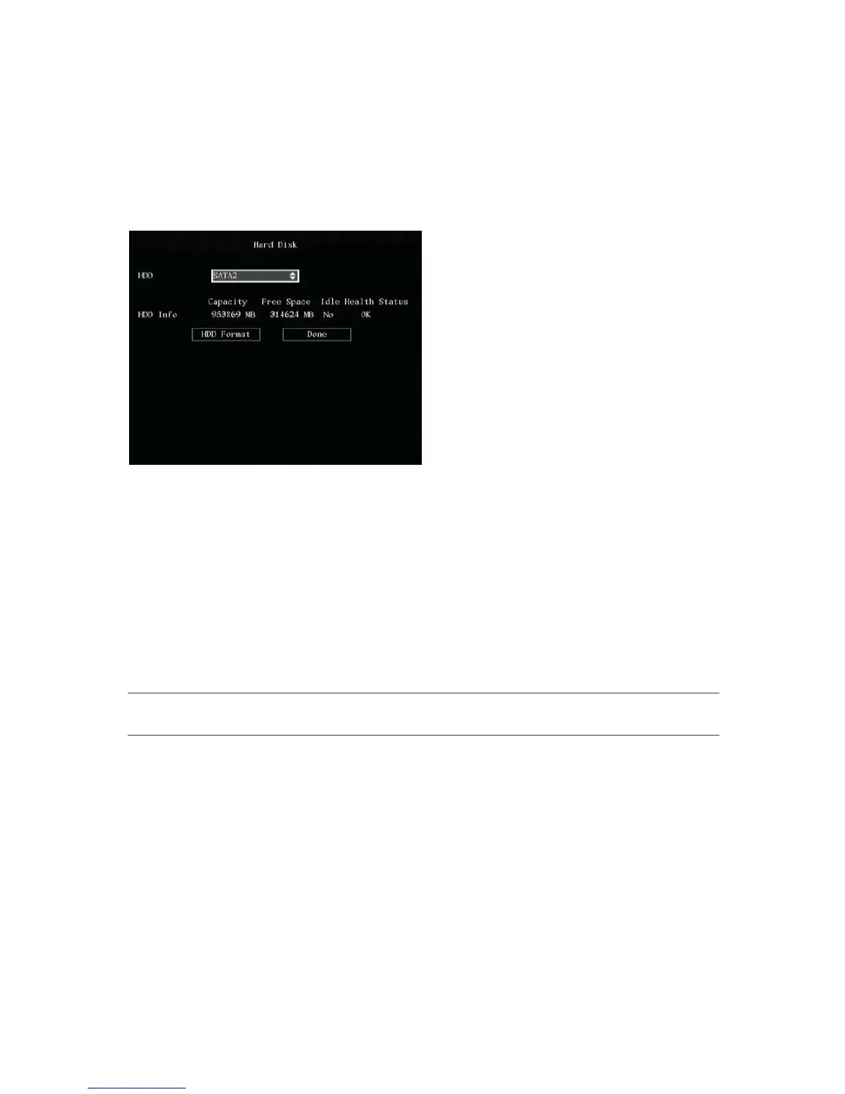 Caution: Before formatting the HDD, stop all recording. Once formatting is completed, you must