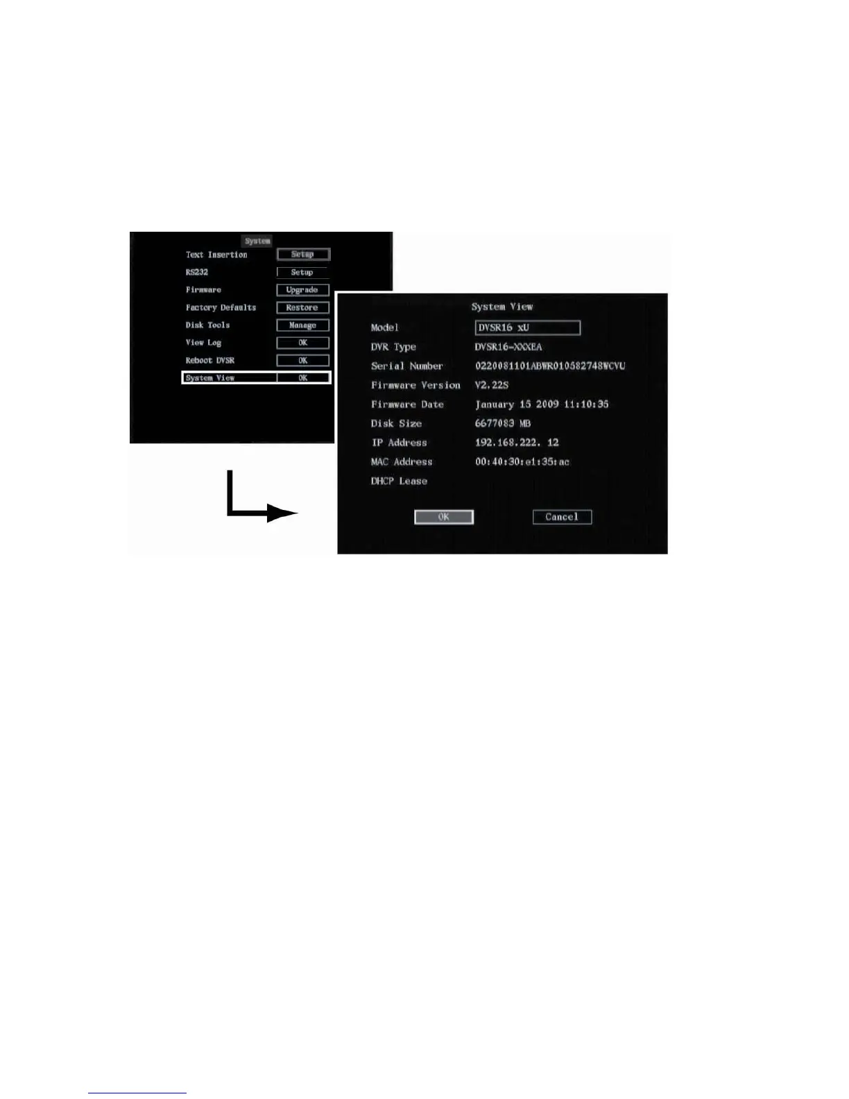 2. Go to OK and press Enter or left-click the mouse to return to the System menu.