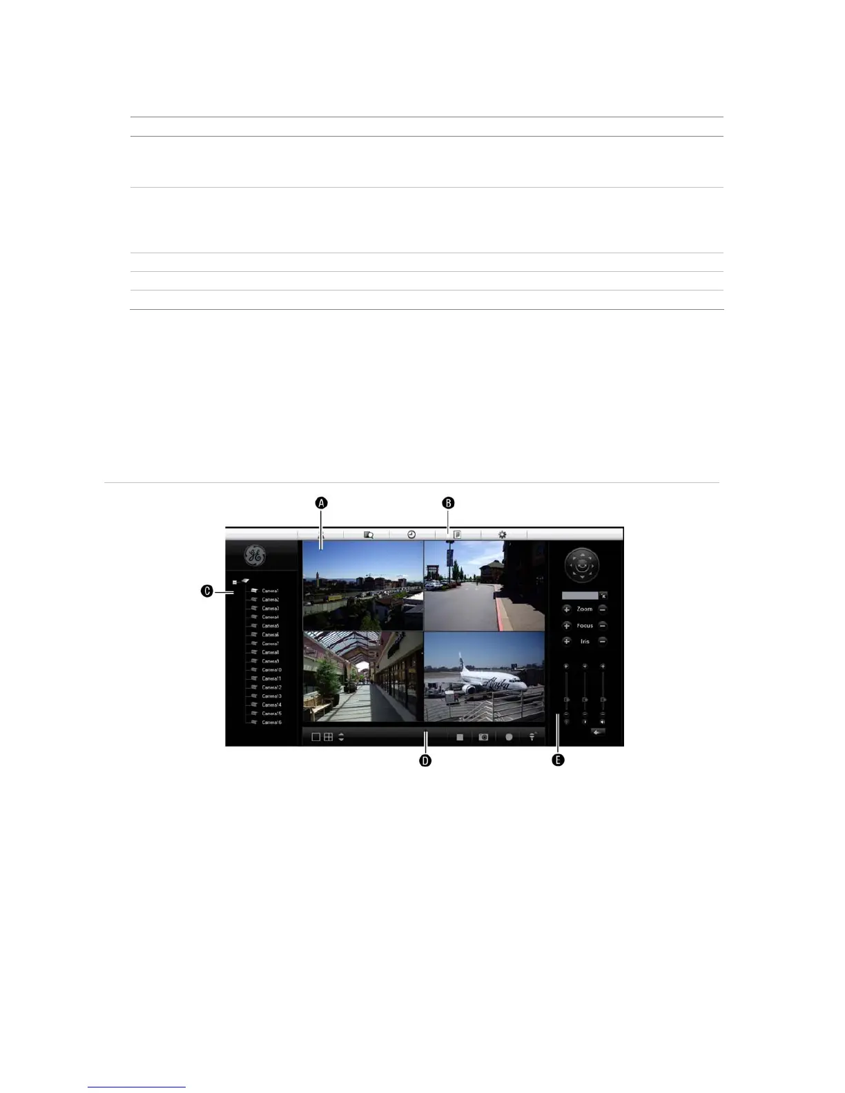 E. Camera controller: Control PTZ cameras or edit properties of the currently selected cameras.