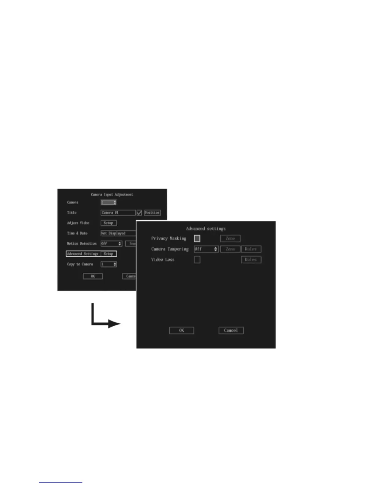 Note: No masked zone appears on-screen when Privacy Mask is disabled.