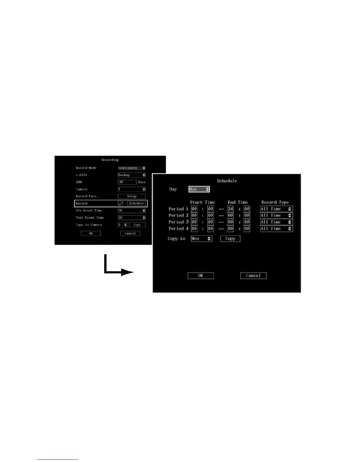 Setting up a camera’s recording schedule