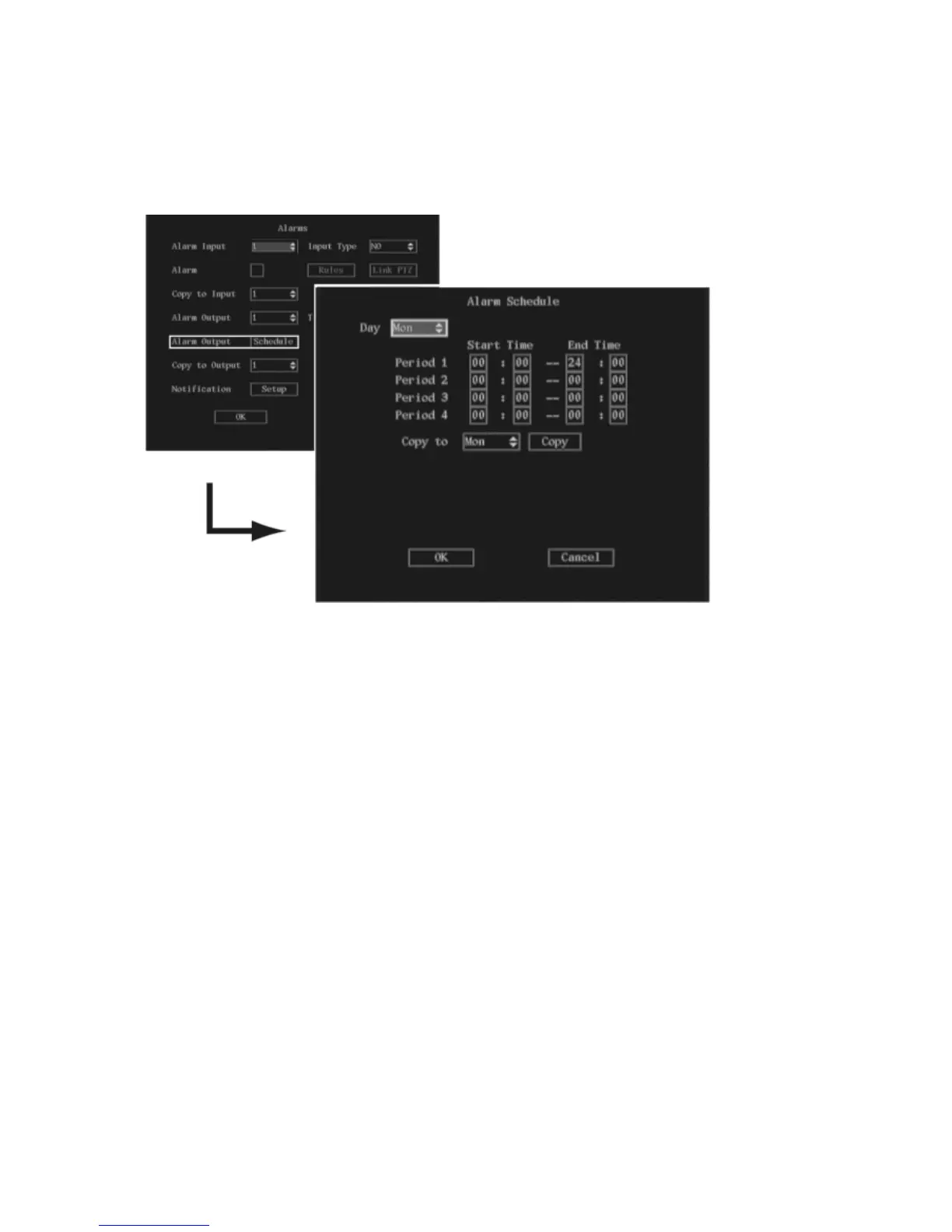 a. Go to the Alarm Output schedule button and press Enter or left-click the mouse. The Alarm
