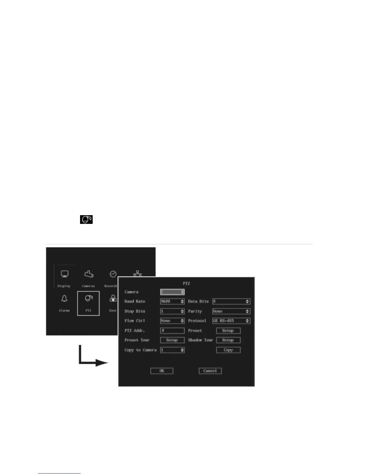 to setup the RS-485 and PTZ parameters to match your PTZ protocol such as: