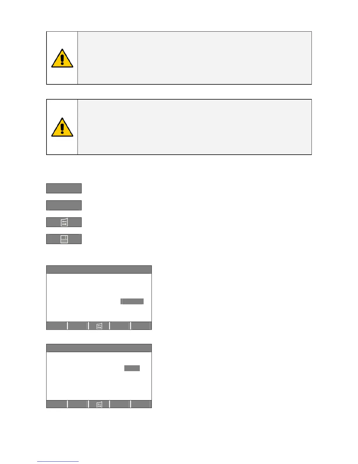 Confirm the selection made and select the next parameter.