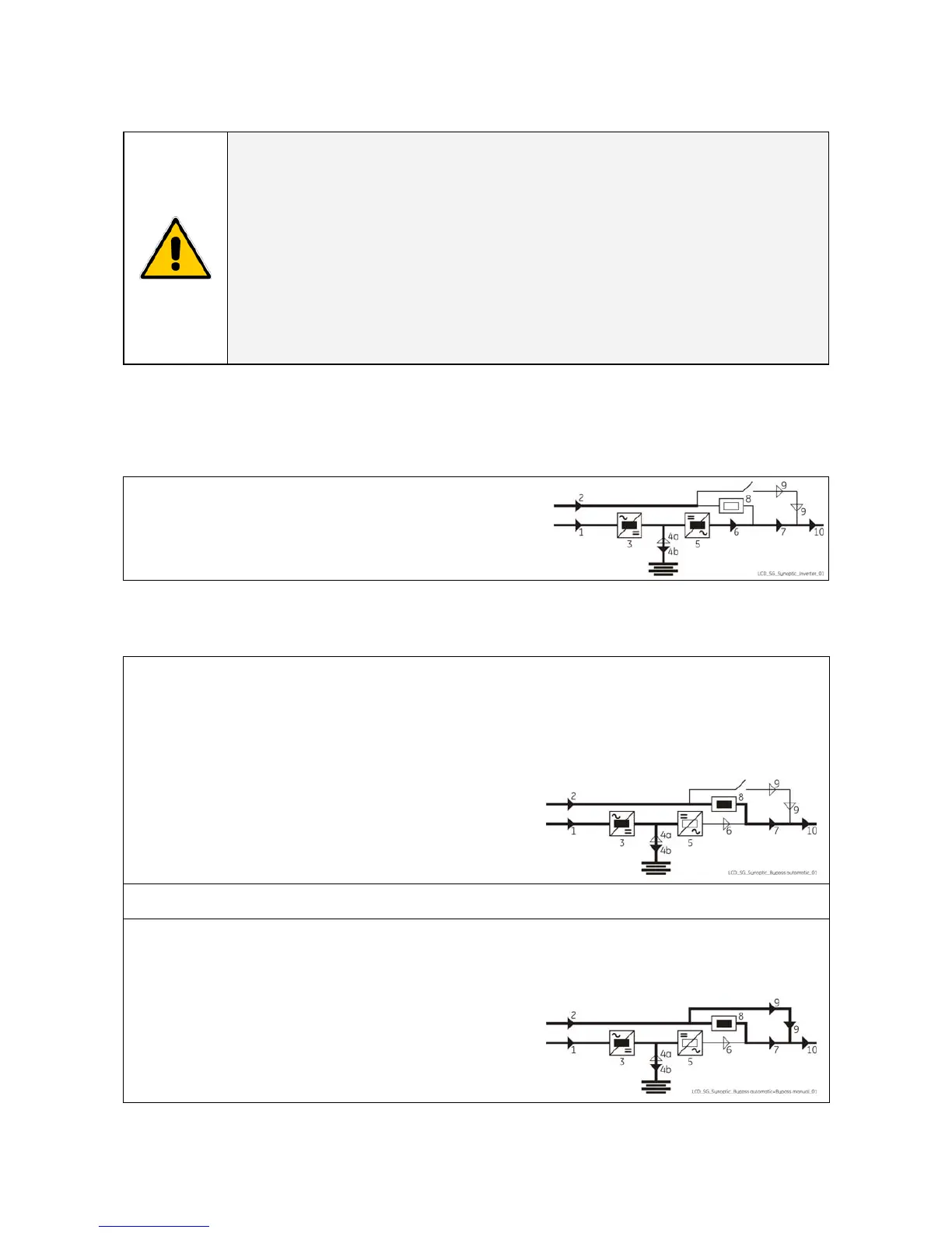 • LED 8 (Automatic Bypass ON) and LED 9 (Manual Bypass Q2 ON) are lit.