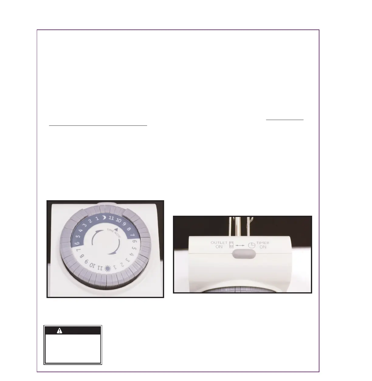 5. Plug the lamp into either outlet on the sides of the timer. Turn the lamp’s switch on for automatic control. The timer will not